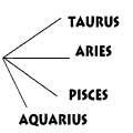 Лучи, соответствующие нулевым градусам остальных знаков Зодиака, направляются на промежуточные стороны света, например, луч, соответствующий 0-му градусу Тельца, откладывается на 30 град севернее от луча, соответствующего 0-му градусу Овена, а луч, соответствующий 0-му градусу Рыб, откладывается на 30 градусов южнее от луча, соответствующего 0-му градусу Овена. Луч, соответствующий 0 градусов Водолея будет на 30 градусов южнее вектора Рыб.